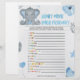 Devinez les mots et phrases baby showers basés sur les indices émoticônes. Combien en aurez-vous ? Veuillez nous contacter directement si vous avez besoin d'une copie des réponses pour ce jeu. Nous serions heureux de le fournir à toute personne qui a commandé le jeu.