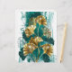Branche avec bijoux, or et feuilles verts de Ginko biloba sur arrière - plan vert clair, peint. Ginko biloba