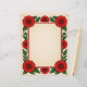 Simple, bright red flowers with green leaves surround a red frame on a light tan background. Eye-catching, colorful, and perfect for correspondence, newsletters, invitations, and more.