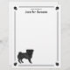 L'illustration originale de Destei d'un adorable chien de race Carlin couleur manteau noir. Le chien est debout et regarde vers le spectateur. La queue est courbée sur le haut du dos du chien. La bouche du chien est fermée et la couleur de l'oeil est marron. Le chien est placé dans un coin et le design est encadré par des bordures qui ont un empreinte de patte de chien dans chaque coin. En haut, il y a deux zones de texte personnalisables.