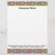 Ce brillant nid d'abeille multicolore personnalisable a un motif abstrait avec des rangées de diamants rose bleu et violet dessus. Chaque rangée est séparée par une rangée de diamants vert foncé. Chacun des diamants vert foncé a un trou au milieu. Le papier est blanc et il y a du texte personnalisable en noir gras dessus. Le modèle vous permet de taper votre nom ou nom d'entreprise en haut et toutes vos coordonnées en bas. Les motifs sont assis au-dessus du nom de la société en haut et au-dessous de l'autre texte en bas. Vous avez également la possibilité de cliquer sur le bouton "customiser" et de modifier la couleur du papier, d'expérimenter avec différentes polices et couleurs de police et de déplacer le texte, ou d'ajouter du texte. Bien que cette en-tête ait été conçue pour l'usage commercial, elle peut aussi être utilisée à la maison pour écrire des lettres, des invitations, etc. Avec toute la personnalisation disponible, cette en-tête est suffisamment polyvalente pour faire ce que vous voulez.