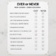 Ever tried something wild? Or never dared? This “Ever or Never” game is the perfect conversation starter for your next party!