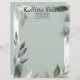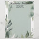 Des feuilles verts et blancs entourent un espace intérieur vert sage sur cette belle en-tête qui est parfait pour un professionnel ou pour une utilisation à la maison. Le dos est vert clair, dans la même ombre que l'avant.