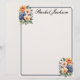 Des fleurs orange, bleues et rose crème ornent les coins d'une bordure bleu foncé sur cette papeterie en en-tête. L'arrière - plan est blanc cassé à l'avant et à l'arrière, ajoutant de l'élégance à votre correspondance.