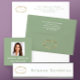 Add your business name and address and logo to this modern sage green letterhead. The minimalist green script can be customized for your purposes. To the left of the address is space for your business template. Browse my collection for matching business product templates.
