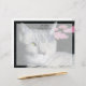 Un crayon de couleur et un dessin pastel d'un chat tabby fumé aux yeux ornent ce personnalisable stationnaire!