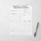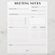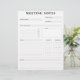 Un planificateur minimal de notes de réunion en noir et blanc pour votre bureau à domicile ou votre lieu de travail professionnel. Espace pour un nom de projet, dates, sujets à discuter, une liste de choses à faire avec les personnes responsables et les délais et espace pour vos notes supplémentaires.