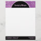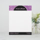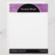 Purple glitter is the backdrop for a pink and black half-circle on this letterhead for a beauty salon. A black banner at the bottom has information for the business. Eyecatching and professional, and adaptable for any stylist, from hair, nails, makeup, or fashion.