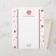 En-tête de lettre comportant le pois rose dans diverses tailles et les nuances de chaque côté. Illustration de petit gâteau d'un centre rose en haut. Personnalisez le texte en haut et basez.