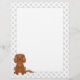 Dessin original de Destei illustrant une jolie couleur de rubis Cavalier King Charles Spaniel chien de race assis. Le milieu est blanc tandis que les frontières ont un motif d'empreintes de pattes gris.