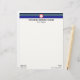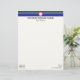 Three lines in different shades of blue make a sharp and professional banner at the top of this eye-catching letterhead stationery. There is space in the blue lines for your logo.