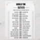 Brisez la glace ou épicez la conversation avec ce jeu amusant et moderne "Voudriez-vous" — rempli de dilemmes inspirés par les habitudes technologiques et les médias sociaux de tous les jours ! Parfait pour les anniversaires, les sorties ados, les nuits de filles ou les soirées digitales. Il suffit d'imprimer et de jouer — une configuration facile, des rires garantis.