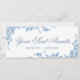 Elégant Classic Dusty Blue Vintage Floral Script Calligraphie Mariage Table de siège Cartes en-tête. Tous les textes sont pré-arrangés pour que vous personnalisiez facilement et rapidement avec vos propres détails.