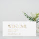 Cet en-tête minimaliste mariage Art déco moderne or présente à la fois une élégante cravate noire formelle et un design décontracté et simple pour une célébration du mariage traditionnelle ou plus rustique. La disposition en or et blanc uni et neutre, avec une typographie classique unique, fait allusion à un boho minimal ou à un rétro élégant, ce qui en fait un design parfait pour n'importe quel thème d'événement. Utilisez ce panneau d'en-tête d'accueil avec votre plan de sièges créatif pour aider vos invités à trouver leurs sièges.