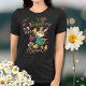Un mignon T-shirt personnalisé pour elle avec un message de Pâques heureux et un nom personnalisé avec un adorable lapin de Pâques avec poulets, arbres et fleurs. Tout le texte est personnalisable, vous pouvez facilement mettre à jour le nom ou transférer le design à un t-shirt différent, ce design est bon sur les t-shirts foncés et aussi légers.