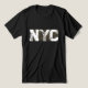 T-shirt graphique représentant New York City (NYC). Le graphique de NYC est sur le devant de ce t-shirt. Customisez le dos avec votre nom ou le texte souhaité. Grand t-shirt pour hommes, femmes et enfants. Utilisez le modèle pour créer votre propre t-shirt graphique NYC.