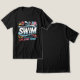 Un T-shirt noir au design éclatant avec le mot "SWIM" en caractères blancs gras, entouré d'icônes de natation colorées comme des lunettes et un flotteur de piscine. Les expressions "IT'S IN YOUR BLOOD!" et "LIVE LOVE LOVE SWIM!" en rouge apportent une touche énergique, parfaite pour les nageurs qui vivent et respirent le sport.