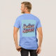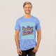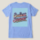 Ce t-shirt bleu présente un design typographique de style rétro avec le texte "Été sans fin" dans une police de script fluide et cursive sur un arrière - plan bleu clair. Le script Endless Summer est dégradé. L'image est à l'avant et à l'arrière du t-shirt. Le t-shirt est un t-shirt tricolore Bella Canvas pour homme bleu clair.
