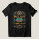 Faites passer votre tenue décontractée à un niveau supérieur avec ce T-shirt graphique "Mute First, Think Later" qui attire l'œil ! Fabriqué à partir de coton noir doux, ce tee-shirt présente un design vibrant et coloré avec un message humoristique et réfléchi. Au centre se trouve un visage calme et méditatif avec un pansement sur la bouche, entouré d'éléments floraux et de style paisley complexes dans des tons orange, sarcelle et rouge.