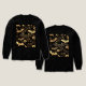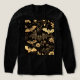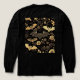 A t-shirt pattern on deep black: ornate golden bats with lace-detailed wings soar among blooming roses, peonies, and curling vines. Metallic gold filigree and vintage botanical illustrations create an opulent Victorian gothic garden effect. Elegant, mysterious, and dripping with dark-romance luxury. Timeless material for many occasions.
