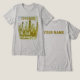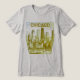T-shirt graphique avec la ligne d'horizon de Chicago Illinois. Couleurs jaune foncé/vert. La ligne d'horizon de Chicago est sur le devant de cette chemise tricolore. Customisez le dos avec votre nom ou votre texte. Utilisez le modèle pour personnaliser. Grand t-shirt pour hommes, femmes et enfants.