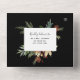 Ces invitations de mariage tout-en-un Forêt d'Hiver comprennent les informations de mariage et une carte-réponse que vos invités pourront envoyer. Une combinaison inspirante de branches de sapin et complétée par des fleurs rustiques beiges, des brindilles de forêt sur un fond noir élégant. Ce design lumineux fera sensation auprès de vos invités ! Changez le texte et la couleur de fond en cliquant sur le bouton "personnaliser". Personnalisez les informations en cliquant sur le bouton "détails".