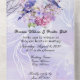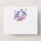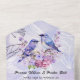 Belle teinte de pourpre clair dans une invitation avec un couple d'oiseaux bleus parmi des lilas pourpres et roses.