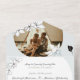 Invitation "tout en un" à la mariage florale élégante et fantaisiste avec photo, détails de l'hébergement à l'hôtel, et code QR RSVP, avec des magnolias dessinés à la main en noir et blanc avec un couple d'oiseaux chanteurs perché sur la branche sous fond de lune bleu clair. Personnalisez votre "Big Day" en noir cassé, bleu muet, accentué d'une belle calligraphie moderne lettrée à la main. Conçu pour coordonner avec notre collection "Sketched Songbirds Magnolias Mariage collection". Ce modèle est personnalisable, vous pouvez donc modifier le texte et les photos pour qu'elles correspondent à votre "Big Day". Cliquez sur le bouton "Modifier en utilisant l'outil de conception" pour customiser cette conception.