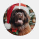 En Verre Brown Terre-Neuve Chien Santa Hat Ornement