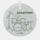 Amusez-vous avec cet ornement personnalisé de gardiennage de batterie. Ajoutez un nom, un nom de bande et une date pour créer un cadeau unique. Customisez la couleur de l'arrière - plan et du texte ainsi que le style de texte. Oeuvre originale de la ménagerie de Night Owl, 2016.