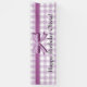 Bannière d'anniversaire de petite fille avec un design motif violet / lavande et blanc en vichy, et un joli arc en haut. Personnalisez votre texte à l'aide des espaces fournis. Si vous souhaitez un contrôle plus créatif, utilisez le bouton "Customiser" pour changer la police, la taille et la couleur. Personnalisez-le à votre gout . Jetez un oeil à toute la collection !