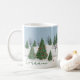 A personalized Christmas mug, with the winter wonderland scene of the enchanted forest (decorated for Christmas). This festive mug will be fun to sip your favorite hot beverage on a winter afternoon!
