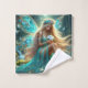 A luminous forest fairy sits gracefully on mossy ground, her flowing turquoise gown and shimmering wings glowing with tiny lights as butterflies dance around her. This magical artwork brings a sense of serenity, wonder, and fantasy to any wall.