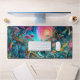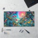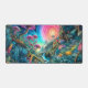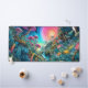 Un paysage imaginaire surréaliste avec des champignons éclatants, une flore alien vibrante, une cascade et un soleil tourbillonnant dans le ciel. La scène est riche en couleurs et en détails complexes, évoquant une atmosphère onirique et autre