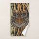 Il s'agit d'un visage élaboré et décoré d'un tigre sur fond de peau de tigre pour le contraste. Audacieux et sauvage avec magnétisme animal. Parfait pour toute salle de bain à thème tigre. Enchantant et exotique.