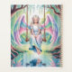 Illustration numérique pastel douce d'un ange éthérée aux cheveux blancs longs et à l'expression sereine, doucement assis sur une balançoire en bois. Les ailes de l'ange brillent d'un éclat irisé, perlé, reflétant les roses, les bleus et les verts doux pendant qu'ils se balancent doucement. En contrebas, une piscine d'eau calme reflète son image, entourée par les racines de deux anciens saules, leurs branches voguant gracieusement au-dessus. La scène est baignée d'une lumière douce et diffuse, créant une atmosphère onirique et un sentiment de réflexion paisible.
