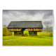 Photographie de voyage de la grange en porte-à-faux à l'endroit de Tipton dans la crique de Cades, parc national de Great Smoky Mountains. (GSMNP) C'est un jour pluvieux et il y a un magma de boue où un chariot vintage est garé. L'arrière - plan est gris avec les rayures fanées de goupille. Cette photo fait un grand cadeau de souvenir de vos vacances du sud dans le Smokies.