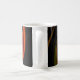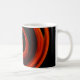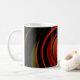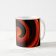 Cette tasse d'art dispose d'un motif tourbillon circulaire aux couleurs brillantes de rouge, orange, vert, jaune, marron et noir. Le design abstrait est une vue impressionniste de l'énergie tourbillonnante de la création.