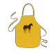 Tablier jaune comportant le dessin au crayon tiré par la main et coloré original du cheval de pur sang de baie.