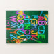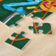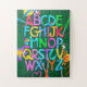 Il suffit de s’amuser, une autre façon de renforcer l’apprentissage d’un enfant sur l’EAC, avec ce puzzle. Grandes pièces avec illustration d'un tableau vert et des lettres peintes. Par l'artiste L. Diane Johnson.
