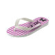 De mignons tongs pour n'importe quelle petite fille. Il présente un en vichy violet et blanc sur les tongs avec une zone personnalisée pour un nom. Des graphiques de petits arcs noirs sont disposés sur le talon du tongs. Adorable !