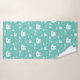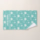 Une serviette de bain Pirate personnalisée pour les enfants avec un motif d'ancres, de bateaux, et crâne et os souriants. Les couleurs sont turquoises et blanches. Customisez simplement le nom, ajoutez ces serviettes à votre panier et profitez-en à la maison.