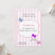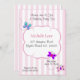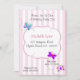 Invitations à l'anniversaire des papillons avec des papillons tourbillonnant sur un arrière - plan rose rayé. Parfait pour les fêtes d'anniversaire pour enfants. Customisez avec les détails de votre fête.