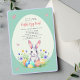 Pâques inoubliable avec cette magnifique invitation florale printanière. Le design est composé d'un joli lapin et de fleurs d'aquarelle, d'oeufs colorés et de papillons roses mignons, ce qui le rend à la fois élégant et charmant. Utilisez les outils de conception pour customiser le texte. Aussi disponible en téléchargement numérique.