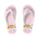 Les licornes et les coeurs composent ces tongs amusants. Personnalisable pour pouvoir ajouter votre propre texte et modifier la couleur de l'arrière - plan. Ça fait un grand cadeau !
