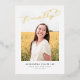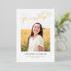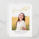 Cette élégante faire-part de graduation et d'invitation comporte une seule photo avec le mot enfin en feuille d'or au-dessus. Le dos de la carte peut être utilisé pour une invitation ou un message personnel.