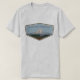 Ce T-shirt ennuyeux de l'Oregon présente un design de patch extérieur avec une image rugueuse peinte par numéro de Mt Hood. Le texte est dans une police en détresse et dit "Oregon ennuyeux" avec "Etabli en 1903" directement ci-dessous. Les couleurs comprennent, différentes nuances de bleu, vert, marron et crème.
