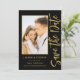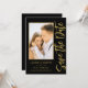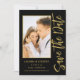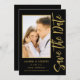 Save The Date Black Gold Stylish Script Modern Wedding Cartes dispose d'un arrière - plan noir avec votre photo personnalisée. Personnalisez avec votre texte en modifiant le texte dans les zones de texte fournies. Conçu pour vous par ©Evco Studio www.zazzle.com/store/evcostudio