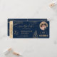 Destination Beach Wedding Boarding Pass Billet Gold Plane Économisez la Date avec l'icône coeur et avion avec des feuilles tropicaux. Ajouter votre photo