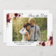 Aquarelle Burgundy Marsala Floral Photo Enregistrer La Date Carte Faire-part Fiançailles